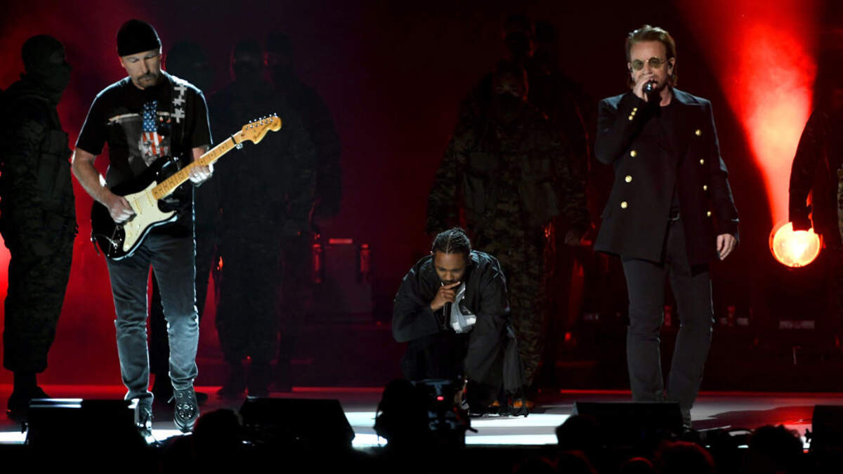 U2's Bono and The Edge made an appearance at the 2018 Grammys during Kendrick Lamar's striking opening performance.
